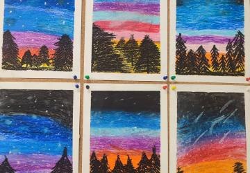 Prace wykonane pastelami przez uczniów klasy 4 i 5
