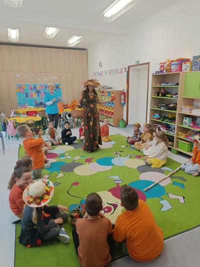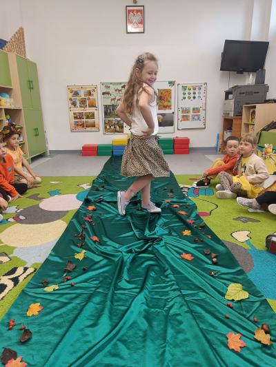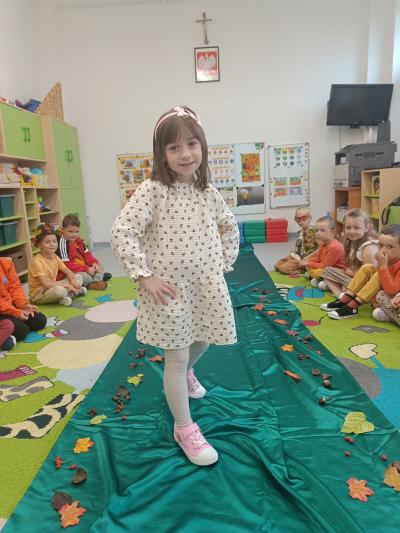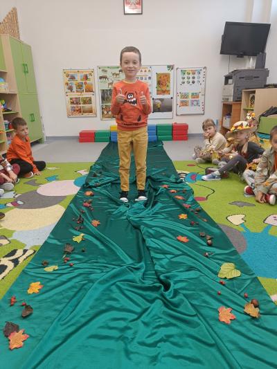 Dzisiaj również odbyło się kolejne ważne wydarzenie – jesienny pokaz mody. Przedszkolaki miały okazję zaprezentować swoje niepowtarzalne, kolorowe kreacje. Na wybiegu nie brakowało pomysłowości, uśmiechu i radości. Niespodzianką była wizyta Pani Jesień, która przygotowała dla dzieci zagadki związane z tą piękną porą roku. Wspólne przeżycia jeszcze bardziej zbliżają dzieci, ucząc je otwartości, odwagi i budowania relacji w grupie.