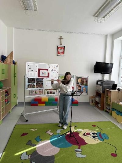 Punktem kulminacyjnym dnia był przepiękny koncert przygotowany przez starszych uczniów. Zaprezentowali oni swoje talenty oraz instrumenty, a dzieci z zachwytem słuchały występów.