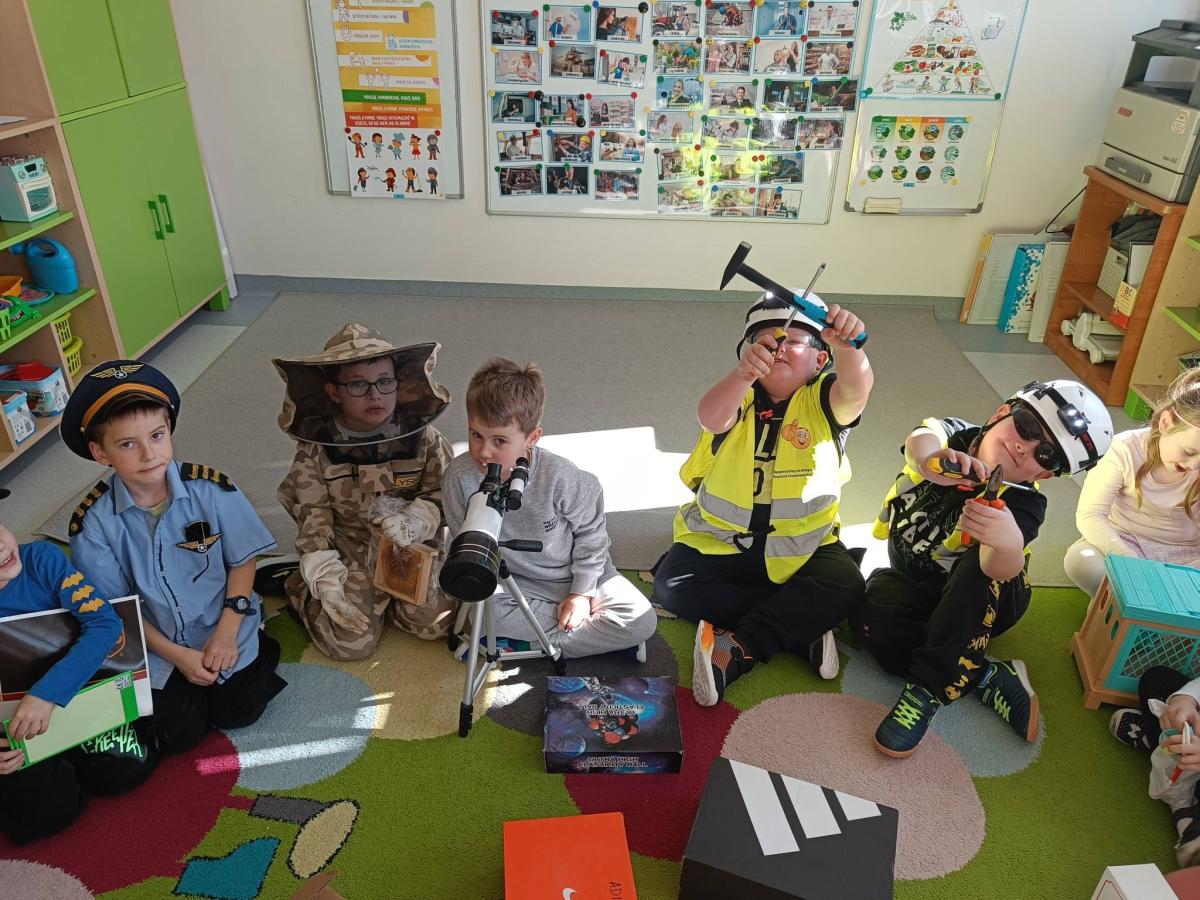 W ostatnim czasie dzieci z naszej grupy przedszkolnej rozmawiały o różnych zawodach. Poznawały, na czym polega praca wielu osób i opowiadały, kim chciałyby zostać w przyszłości.
