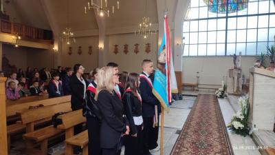 Uroczystości rozpoczęliśmy od mszy świętej w kościele parafialnym w Podłopieniu, sprawowanej w intencji uczniów, rodziców, nauczycieli, katechetów, dyrekcji oraz śp. Jolanty Sopaty – byłej Pani Dyrektor naszej szkoły.