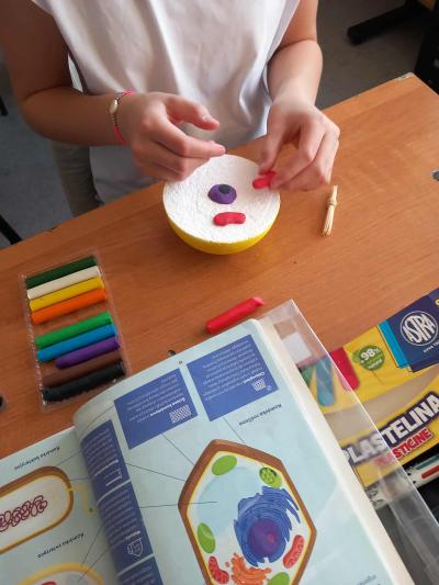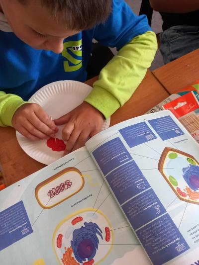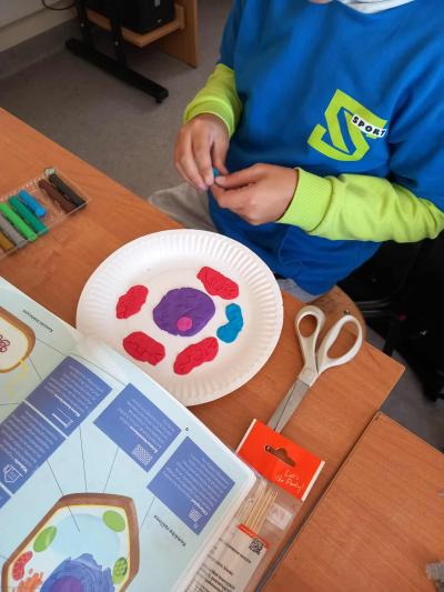 Uczniowie klasy 5 realizując na zajęciach biologii temat „Komórkowa budowa organizmów” wykazali się niezwykłą pomysłowością wykonując modele wybranej komórki. Do ich budowy młodzi biolodzy wykorzystali różnorodne materiały: plastelinę, wykałaczki, kreatywne druciki, gąbkę, tekturowe talerzyki itp. W ten sposób uczniowie podsumowali zdobyte na lekcji wiadomości dotyczące budowy komórki roślinnej, zwierzęcej, bakteryjne i grzybowej, struktur tworzących komórkę – ich wyglądu, funkcji i rozmieszczenia w komórce.