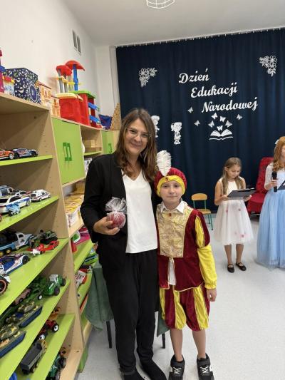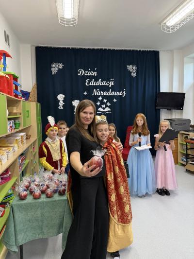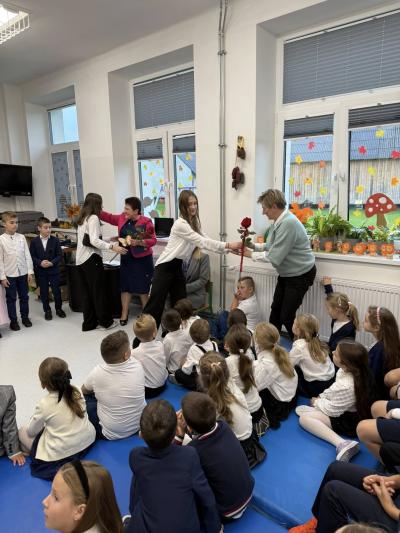 Z okazji Dnia Nauczyciela klasa trzecia przygotowała wyjątkową akademię – było trochę refleksji, trochę wzruszeń i dużo śmiechu! Uczniowie przytoczyli fragment Małego Księcia o autorytecie, pokazując, jak ważni są nauczyciele w naszym życiu. Punktem kulminacyjnym było wręczenie… „jabłkowych Oskarów” nagradzając nauczycieli oraz pracowników szkoły za ich cierpliwość, pasję, supermoce i codzienny uśmiech.