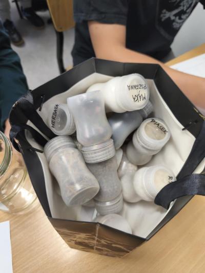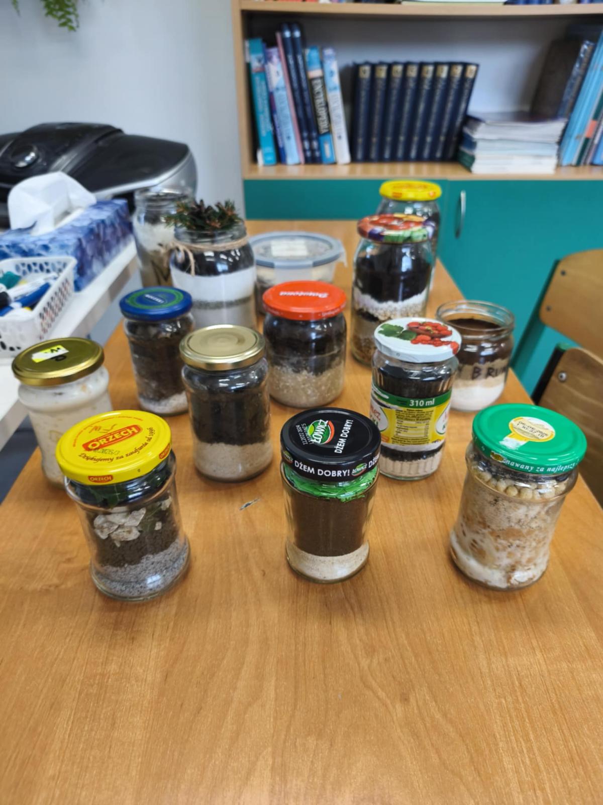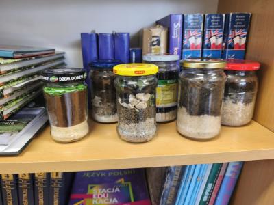 Z kolei w modelach niejadalnych użyto materiałów takich jak mąka, kawa, pokruszone skorupki jajek, piasek, kamyczki, ryż czy cukier, które doskonale oddawały wygląd i strukturę rzeczywistych profili glebowych.