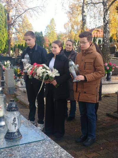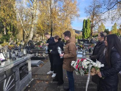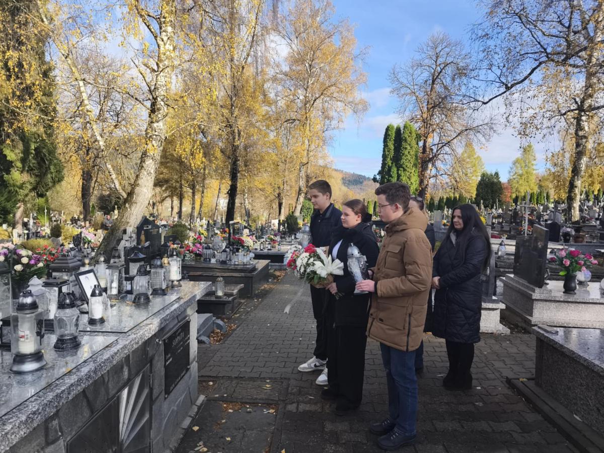 W kolejną rocznicę śmierci naszej byłej Pani Dyrektor udaliśmy się wspólnie na cmentarz, aby uczcić Jej pamięć. W miejscu spoczynku zapłonęły znicze- znak naszej wdzięczności, pamięci i szacunku. Uczniowie, nauczyciele oraz rodzice zebrali się przy grobie Pani Dyrektor, by w skupieniu i refleksji oddać hołd osobie, która przez lata z zaangażowaniem i oddaniem tworzyła fundament naszej szkolnej wspólnoty. Wspominaliśmy Ją jako człowieka pełnego serca, mądrości i pasji, który pozostawił trwały ślad w historii szkoły oraz w naszych sercach.